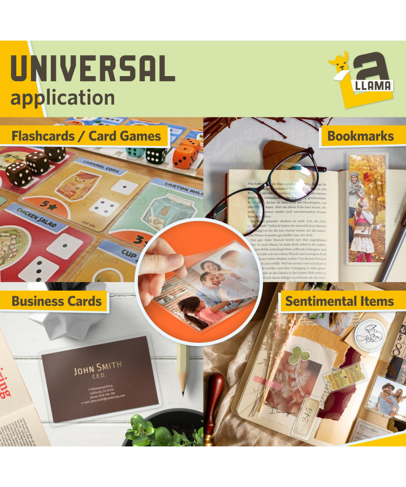 4 MIL TEAR AND WEAR SAFEGUARD - La Llama matte laminating pouches are 4 mils thick - fine stiffness for laminating id cards, luggage tags, social security cards, photos, sticker labels, spice labels, food labels, and all kinds of school supplies, mini school supplies & teacher supplies - all using self adhesive laminating sheets